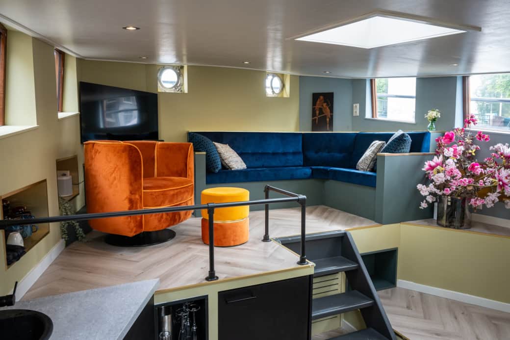 The Sailors Suite is a serene, design-forward hideaway, with a cozy living area, tranquil sleeping space and a modern bathroom. Step onto the deck to watch canal life glide by, then retreat inside to air-conditioned comfort with fast Wi-Fi and a Smart TV.